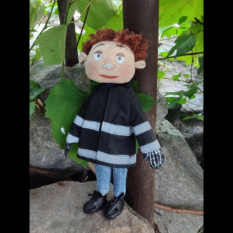 Закі. Персонаж мультфильм"Коралина в стране ужасов" Высота 35 см. Сидит с опорой.Ткань бабовина, набитая синтепухом, роспись лица акриловыми красками, закреплена акриловым лаком. Вся одежда снимается, полностью как у персонажа.