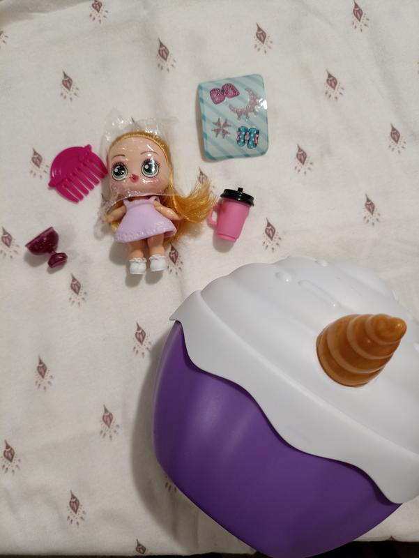 набор входит: кукла платье обувь расческа бутилочка десерт игрушечный наклейки Все это сложено в пластиковую коробочку с рогом