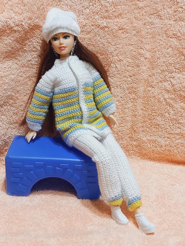 Модний та сучасний костюм для ляльки Барбі, ручної роботи, пов'язаний гачком із гіпоалергених ниток бавовни. Легко одягається і застібаєтся на липучку. Ціна костюму 170грн. Запрошуємо на наш сайт Cool Toys до розділу "Іграшки для дівчаток ", де вас очікує більше красивого одягу для ляльки Барбі та приємні ціни. Шапка та кросівки до костюму не входять. Буду рада замовленню у вайбері **********. Одяг для ляльки Барбі.