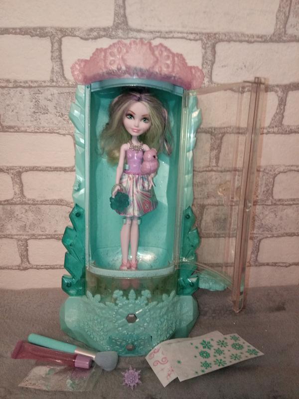 Ігровий набір Евер Афтер Хай з Крістал Вінтер - Епічна Зима. Крістал Вінтер, дочка Снігової Королеви, - нова героїня в Школі Довго і Щасливо. У цьому наборі вона постає зі сніжною установкою, з допомогою якої ляльку можна прикрасити яскравими візерунками. Варіанти обмежені лише Вашою уявою. В набір входить: лялька Крістал Вінтер з вихованцем-совою, снігова установка, наклейки, блискітки, клей, пензлик, а також кільце для дівчинки. Шарніри є тільки в ногах Крістал, руки застигли у витонченому жесті. Прикрасити ляльку можна за допомогою наклейок, які йдуть у комплекті, а також снігової установки. Для цього потрібно намазати клеєм ті місця, де повинні бути блискітки, засипати блискітки в спеціальний відсік на сніговій установці, встановити туди ляльку і натиснути на кнопку. В установці підніметься справжня сніжна буря! Після ляльку потрібно очистити від зайвих блискіток за допомогою пензлика. Готово! Грати можна знову і знову. Виробник Mattel. Працює від 4-х батарейок АА ( в комплект не входять). Стан відмінний, використано декілька наклейок. Дуже вигідна ціна для відмінного стану. Ціна на нові стартує від 1200 грн Відправка НП, УП