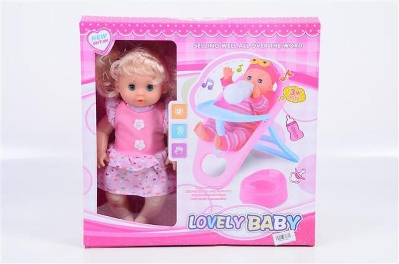 Музыкальная интерактивная кукла-малыш прекрасно подходит для игры в дочки- матери. Вашему ребенку она обязательно понравится. В комплект входит бутылочка, горшок, стул.
