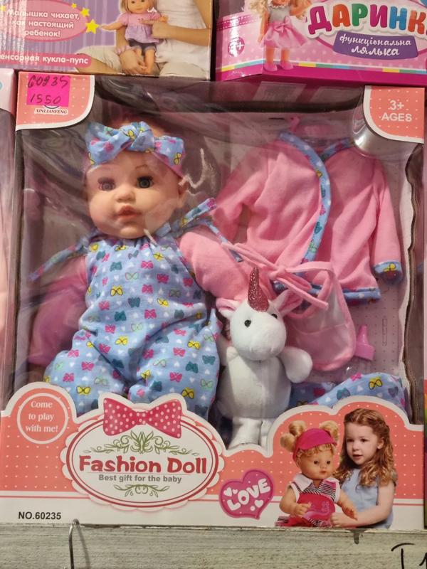 Каждая девочка мечтает о маленьком пупсе. С таким подарком малыш сможет почувствовать себя мамой. Она будет заботиться о своем ребенке, кормить его, менять подгузник, будет приносить соску, брать с собой на прогулку. У куклы нарядная одежда и носки. В набор входит мягкая игрушка сумочка пляшечка халатик слинявчик Размер куклы 40 см