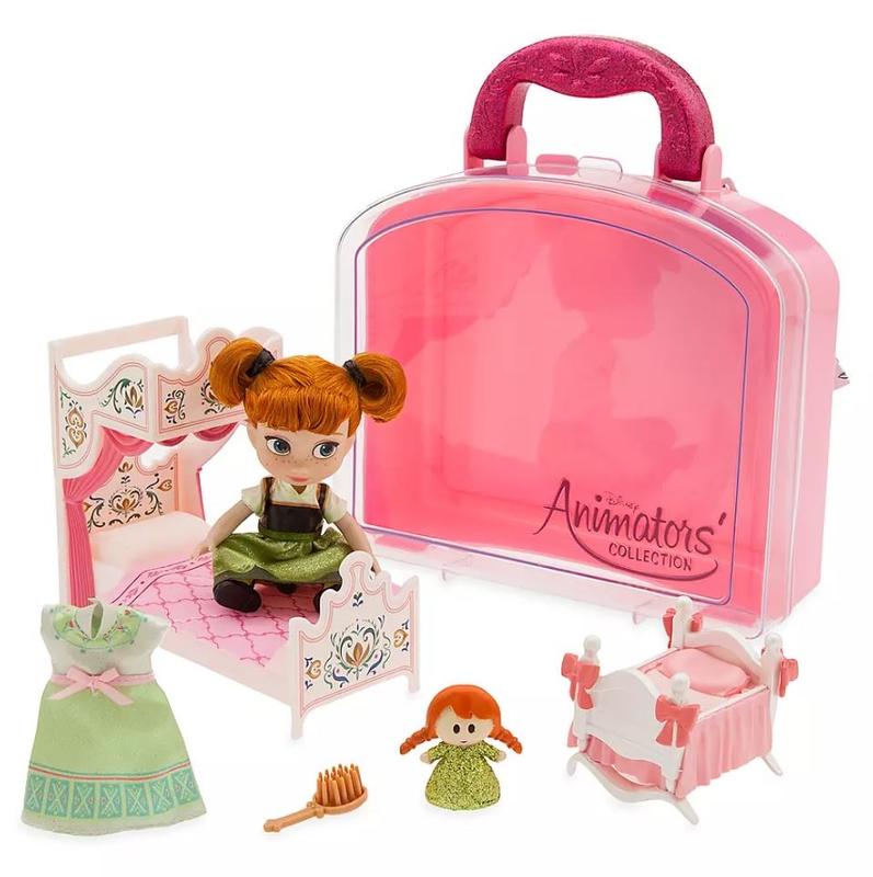 Disney Animators Collection мини кукла Анна Anna Mini Doll . Мини кукла Анна Disney Animators. В наборе: мини кукла Анна, кровать, колыбелька для маленькой куклы Анны, дополнительное платье, фигурка Анны, расческа. Высота мини куклы Анна 12.5 см. Прочный футляр для переноски с прозрачной крышкой и блестящей ручкой. Вдохновлен диснеевским мультфильмом «Холодное сердце» (2013). Animators Collection Anna Mini Doll Play Set . Оригинал Disney .