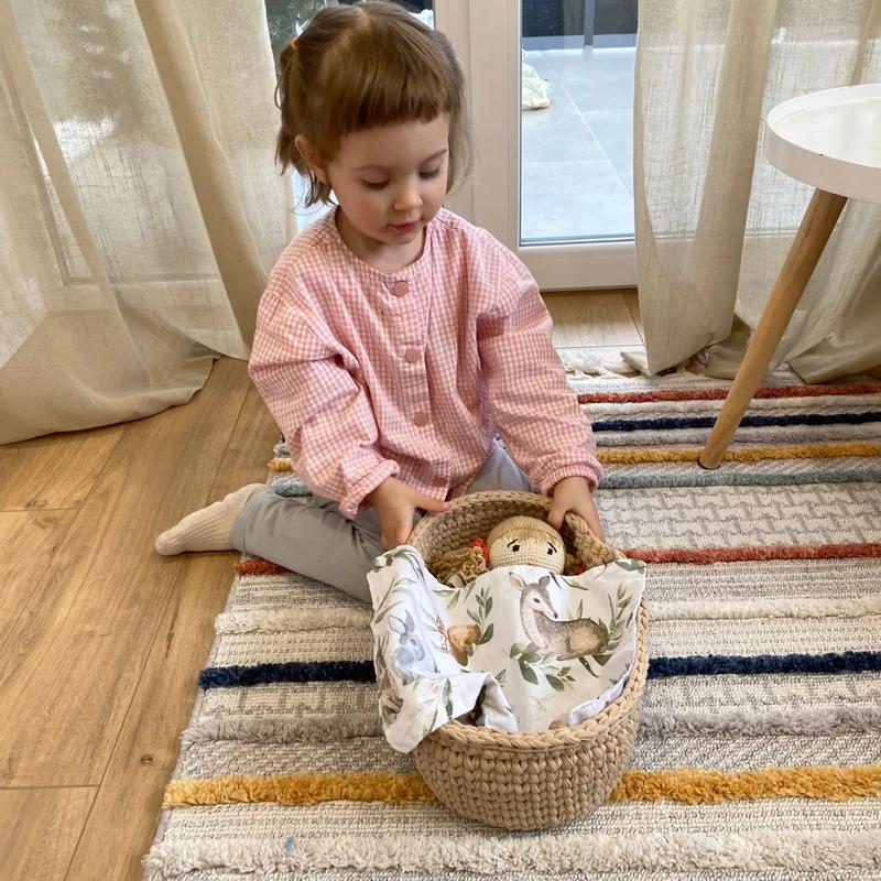 кровать для куклы основа и ножки 4мм фанера именно кровать из трикотажной пряжи размер 30 на 15 постельное белье выполнено из сатина (при заказе можно выбирать из существующих рисунков)