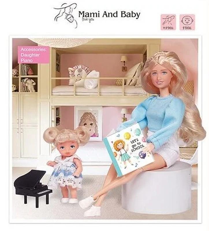 Ляльки завжди були для дівчат способом втілити фантазії про своє майбутнє, прожити різні життєві сценарії та ролі у процесі гри. Ця лялька втілює у собі такий важливий етап життя жінки як материнство. Але ця молода мама є справжньою модницею, яка слідкує за трендами не тільки для себе, але й для свого малюка. Обидві ляльки вдягнені у комфортний домашній одяг, наче мама з донькою, які разом відпочивають у свій вихідний. Лялька має рухливі шарнірні суглоби, тому може приймати безліч реалістичних поз, а також густе довге волосся, з якого буде так весело й цікаво робити модні зачіски. Особливості: - висота ляльки 30 см; - висота пупса 11 см - шарніри у суглобах ляльки; - лялька виконана з пластику із гумовими головою та руками; - зйомне взуття йде у комплекті з лялькою; - довге та густе волосся ляльки; - у комплекті йде іграшкове фортепіано для пупса; - лялька вдягнена у модний домашній одяг Розмір упаковки: 25 см × 6 см × 36 см