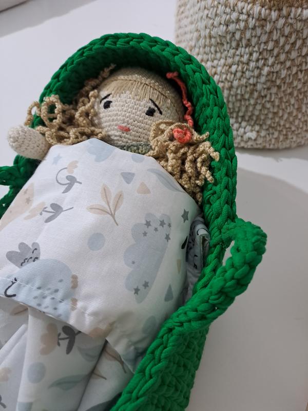 Очаровательная кровать для куклы, изготовленная из высококачественной фанеры для максимальной прочности и долговечности. Люлька выполнена из трикотажной пряжи зеленого цвета, размером 30 на 15 см. Кроватка можно стирать только вручную. В комплект входит постель и матрасик, изготовленные из сатиновой ткани, которые можно стирать как вручную, так и в стиральной машине, обеспечивая легкий уход. Храните вашу куклу в уюте и комфорте с непревзойденной кроватью!