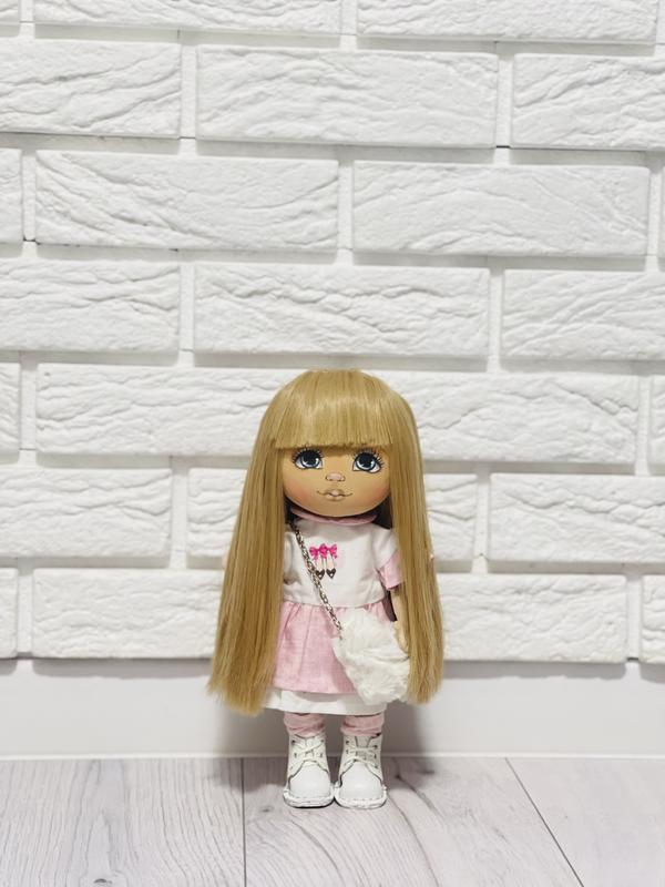 Зріст 28 сантиметрів.Одяг та взуття знімаються.Створена з бавовни.Подарункове пакування.