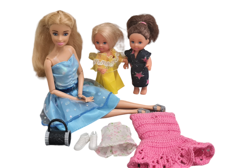 Модная шарнирная кукла Штеффи. Благодаря подвижности кукла может принимать разные позы: сгибаются локти, кисти и колени В наборе кукла Штеффи и 2 куклы Еви, Куклы в отличном состоянии, волосы гладкие не спутанные.