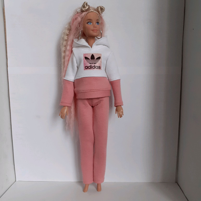 Тип іграшки: Одяг для ляльок Спортивний костюм з принтом і капюшоном. Принт може змінюватися. Ззаду застібка на липучці. Продається тільки одяг.