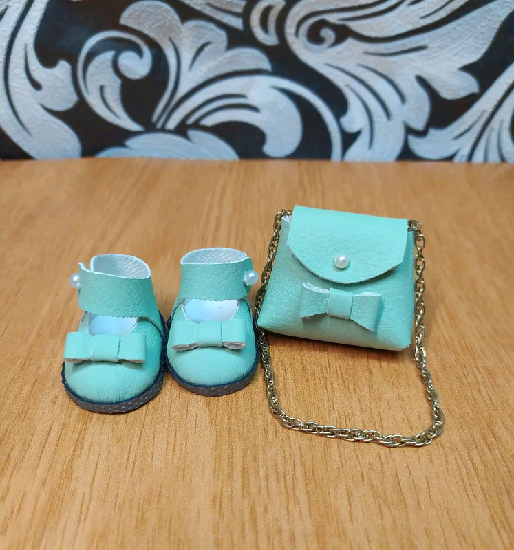 Тип іграшки: Аксесуари Набір туфельки та сумочка для текстильної ляльки: Розмір взуття 4,5 см×2,5 см Матеріал екошкіра Сумочка відкривається