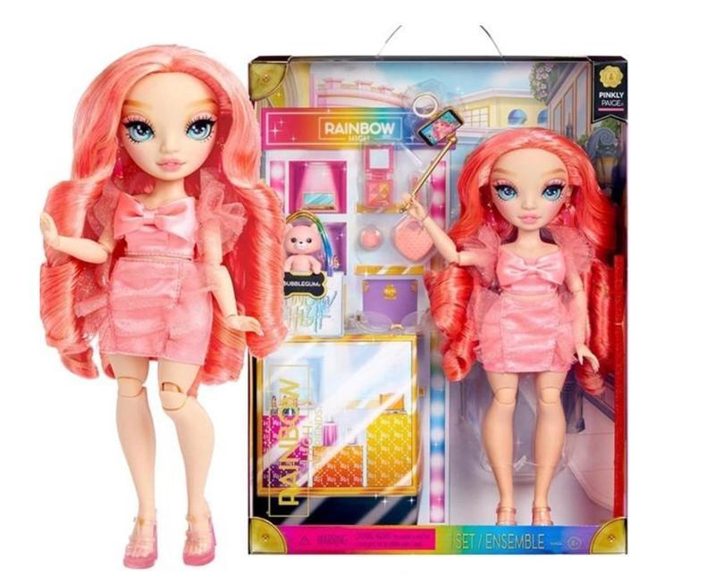 Кілька примірників у наявності Rainbow High New Friends — це новітнє на літо 2023 року доповнення до серії ляльок Rainbow High — з новими унікальними типами тіла, яскравими, сміливими кольорами та деталізованими функціями. У модній колекції Rainbow High New Friends Series 1 (у першій серії) виходить 3 ляльки — висока, мініатюрна та пишна! Кожна лялька має аксесуари, пов'язані з її хобі: - Блу Брукс — скейтбордистка, вона має скейтборд і гіпс (від виконання нового трюка) - Лілак Лейн захоплюється хімією, вона має інвентар для експериментів і гарний записник, у який вона записує результати дослідів - Пінклі Пейс — блогер, що захоплюється макіяжем і ляльками РОЗОВИЙ — ЦЕ СКЛАДІСТЬ. Пінк Пейдж, яка трохи вища та трохи пишніша, від голови до ніг одягнена в рожеве. Свій стиль вона виражає за допомогою рожевої спідниці та приталеного топа, рожевих прозорих туфель на шпильці та рожевих сережок із підвісками. У неї довге рожеве кучеряве волосся, довге справжні вії та скляні очі. У неї також є прозорі окуляри та рожева сумочка у формі серця. Лялька Pinkly Paige, яка спеціалізується на дизайні одягу, натхненна своїм життям. Він любить грати зі своїм собакою, жувальною гумкою й улюбленим тенісним м'ячем. Він любить робити селфі за допомогою камери на кінці палиці для селфі. У своїх косметичках і помадах її надихають рожеві відтінки. Цей набір подарує дітям нескінченні веселощі та творче задоволення від оповідання історій. Лялька повністю рухома. Її голова, руки, пензлі та ноги згинаються, створюючи безліч кумедних поз, включно зі шпагатами! Ви також можете розмістити його на підставці для ляльки, що додається. Лялька упакована в гарну коробку, яка чудово підійде як подарунок на день народження. Лицьова сторона паковання демонструє її унікальну індивідуальність. Виробник: Rainbow High