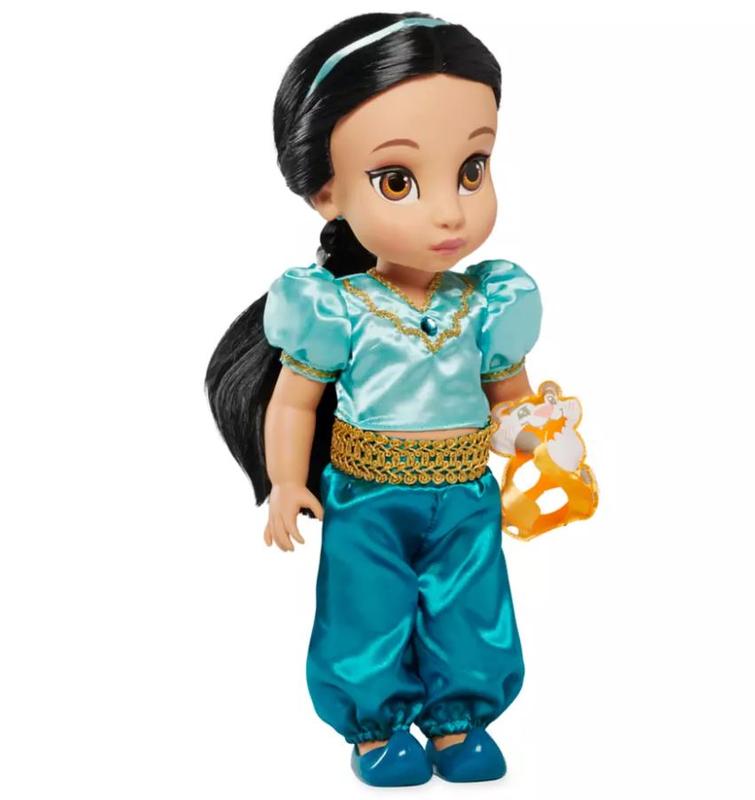 Лялька малятка Жасмин. Жасмин Лялька Дісней із колекції Disney Animators Collection. Чарівна лялька Жасмин — одна з найкрасивіших малят Діснея. Всі деталі дуже точно передані: пальчики, обличчя, пропорції. Волосся в Жасмин прошите, а це означає, що її можна зачісувати, у ляльки Жасмин рухаються ручки, ніжки та голова. На руці в ляльки вихованець плюшевий друг Рона. Висота ляльки 40 см. Оригінал Disney. Disney Animators' Collection Jasmine Doll – Aladdin.