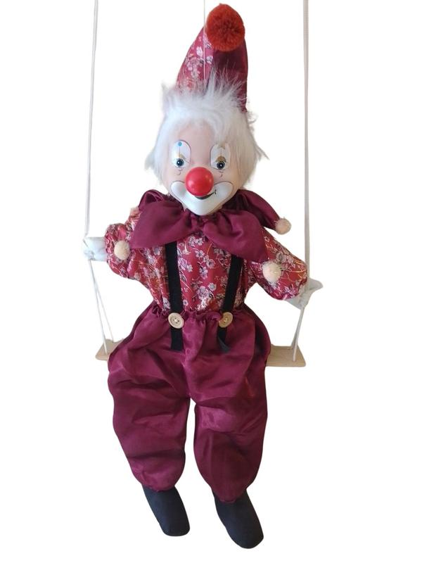 Игрушка клоун, длина самой игрушки 55см с подвесом 85см. Тело мягкое, набивное, голова керамика. Состояние-новое.