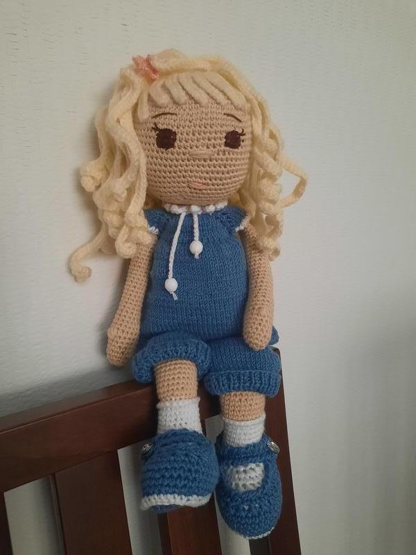 Кукла связана крючком. Наполнитель холлофайбер. Размер 35м. Одежда снимается.