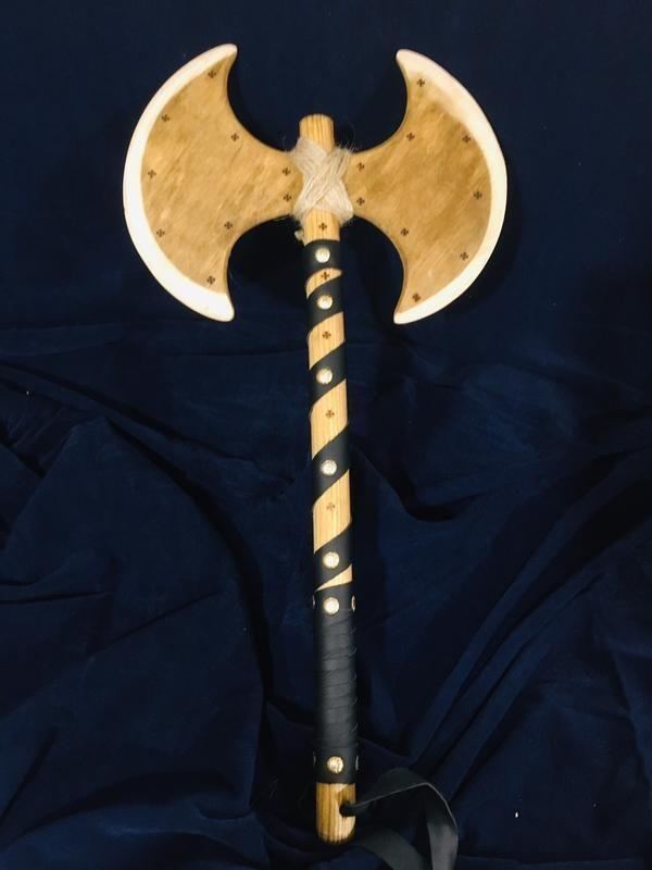 Сикира топор для юных викингов в авторском оформленит. Длина рукояти 50 см. Очень качественно делаем детские игрушки на рыцарскую тематику. Порадуйте малышей