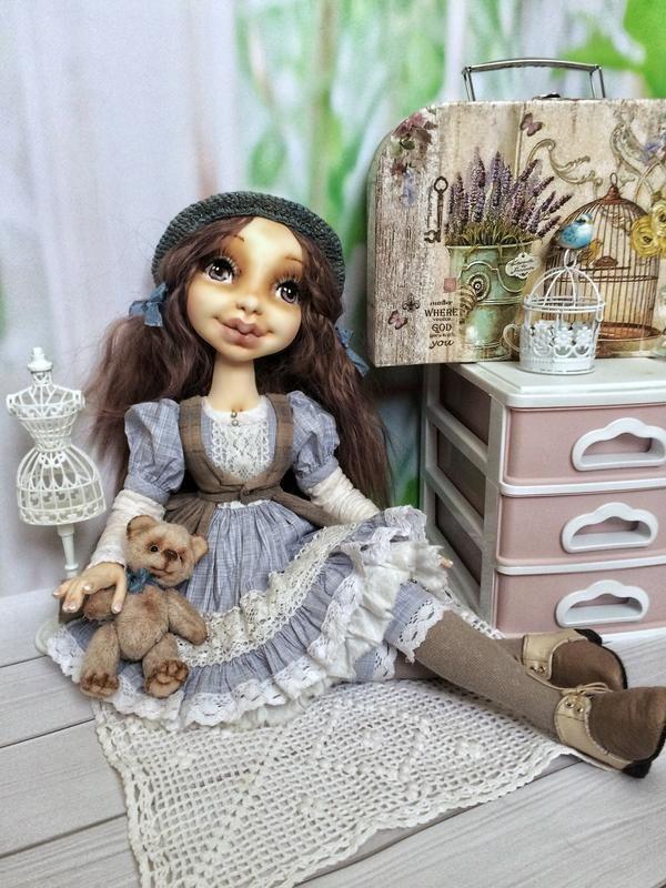Интерьерная текстильная кукла «девочка с мишкой»