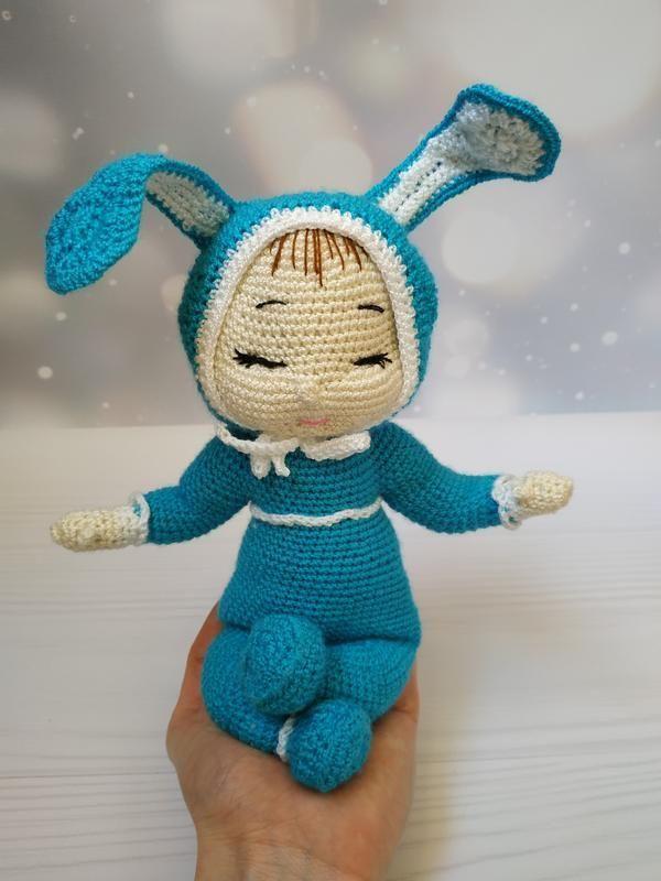 пупс-сплюшка Ручная работа пряжа гипоаллергенный акрил BONBON, наполнитель полиэфирное силиконовое волокно (гигиеничное, мягкое, упругое, легкое, сохраняет форму после стирки). Любое количество и цвет под заказ 11*7*24h) см (31см с ушами) , Сделано с любовью Товар под заказ