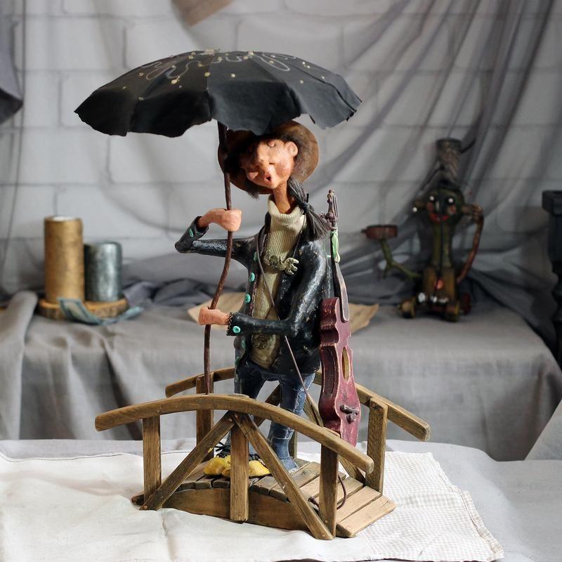 "Hans in Love" is one of the central works in my collection of author's dolls. Most of the details are made using papier-mâché technology. The materials I used were clay, wood, metal, fabric, and acrylic paints. The doll is not for play. Careful care, avoid washing with water. Height 53cm