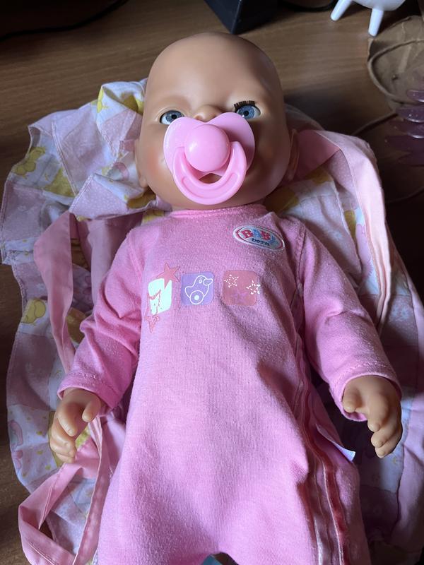 Отдаю вместе с переноской и соской. Также добавляю маленький подарок. Эффект только что на одном глазе нет ресниц. А так без других дефектов. Пьет и ходит в туалет. Одежка светится