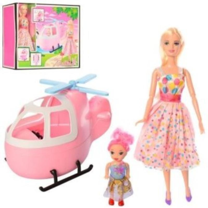 Кукла шарнир, 30см, дочь 10см, вертолет, в кор-це, 38-33-12см