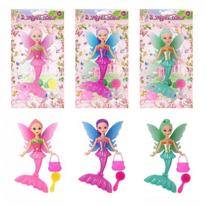 Лялька "Русалка", з крилами. 20 см, 3 види. Сумочка, гребінець в наборі. Матеріал - комбінований. Упаковка - пакет. Розмір - 14х4х27 см.