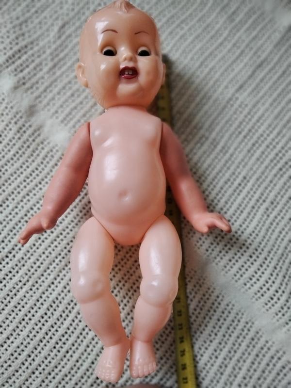 Винтажный пластиковый пупс кукла с зубками. Производителя не оприделила. По ходу на спине есть клейкая буква М и номер на затылку. Состояние красивое. Глаза сплящи.