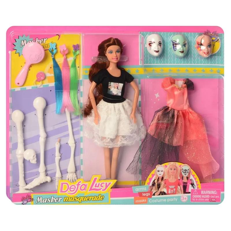 Кукла с одеждой и аксессуарами отличный подарок для девочки Такой замечательный игровой набор для девочки в большой подарочной упаковке надолго увлечет маленькую принцессу. Куклу можно переодевать, одевать на нее маски, менять ее образ при помощи замены рук и ног. Кукла с одеждой DEFA 8411-BF маски, аксессуари, платье Планшет лист, 42-33-4 см. Кукла с маскарадным костюмом Defa Lucy станет лучшей подружкой для вашей малышки. В комплект входит карнавальный костюм, 3 маски и расческа. Красотка с длинными волосами и подвижными головой, ручками и ножками. Куколка от ТМ Дефа Люси одета в юбку, футболки и туфельки. Она поможет девочке придумать много сюжетов для игр. Ей можно шить наряды и делать прически. Игрушка представлена в продаже в ассортименте 3 видов. При заказе уточняйте желаемую куклу