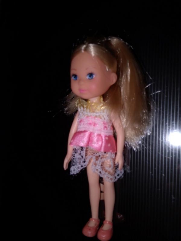 маленька лялька дівчинка в рожевому платті у чудовому стані
