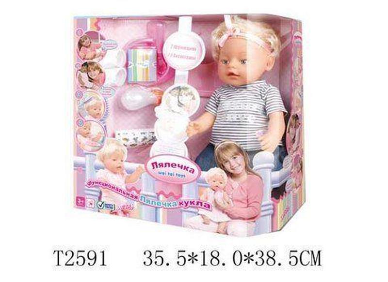 Уценка. Пупс функц. "Лялечка", 7 функций, 10 предметов, в кор. 35х18х38 /8/ (Разбита упаковка, грязная одежда)