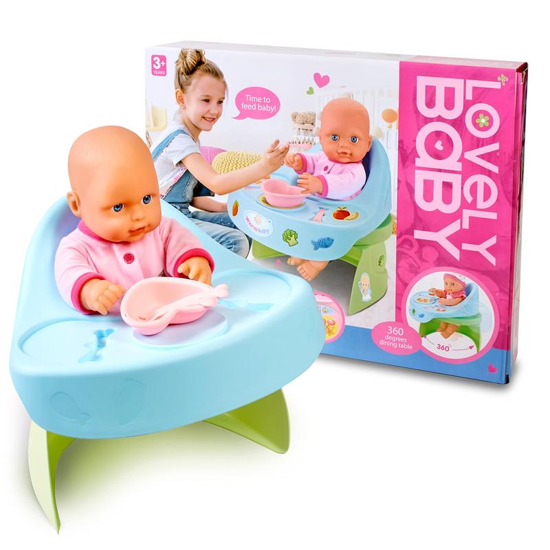 Игрушечный пупс кукла со стульчиком для кормления. набор для девочек топ