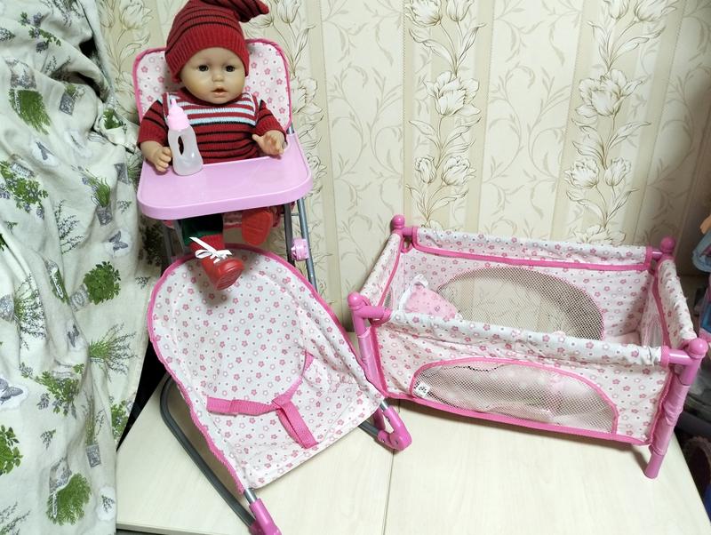 Суперовый комплект для маленькой будущей заботливой мамочки или старшей сестрички. Продаю вместе с куклой. Все в хорошем состоянии, только на кроветке есть небольшие недостатки ( трещина, на фото показала, разрыв ткани, можно подшить, нет снизу одной перекладины) но это на игру не влияет. Комплект по уходу за малышкой научит Вашу девочку быть отзывчивой и заботливой, больше понимать мамочку и помогать ей.