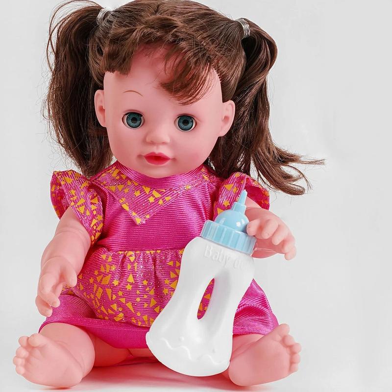 Пупс от "ТК Group" - это не просто обычная игрушка для Вашего ребенка, это настоящие кукольные карапузы, нуждающиеся в заботе и ласке! Особенности модели:- трогательный дизайн самого пупса;- отличная детализация; - детская песенка и 6 фраз на украинском языке;- движущиеся ручки и ножки;- бутылочка для кормления; - умеет есть и ходить на горшок;- в горизонтальном положении закрывает глаза; - одет в милый наряд из приятного на ощупь текстиля;- звуковые эффекты работают от 3-х батареек LR44 (входят в комплект). Славный кукольный карапуз выглядит реалистично благодаря подробной детализации: аккуратный носик, красные губки, голубые глаза, складочки присущи маленьким деткам! При нажатии на животик кукольный малыш воспроизводит 6 фраз и веселую песенку на украинском языке. Также он умеет ходить на горшок и есть, а также закрывать глаза, когда его укладывают спать. Младенец одет в малиновое платье с золотистыми декоративными вставками на рукавах, у шеи и юбки. Шоколадные волосы уложены в два аккуратных хвостика, которые придают миловидности детскому личику. Игры с пупсом развивают у ребенка социальные навыки, которые в дальнейшем однозначно пригодятся в будущем! Комплектация:- пупс;- бутылочка. Рост пупса - 31 см.