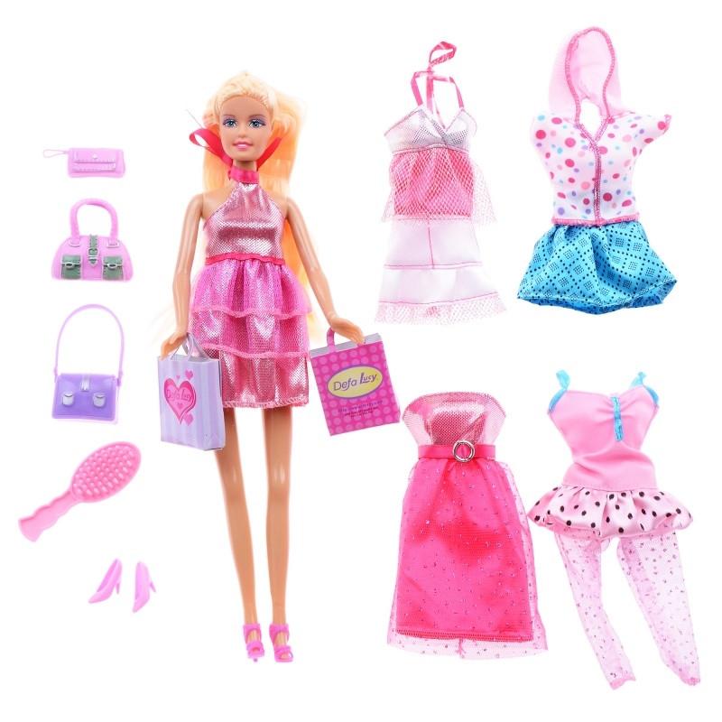 Такому набору одягу позаздрить будь-яка модниця. Лялька одягнена в красиву сукню (за допомогою стрічок вона зав'язується на шиї) і взута в рожеві босоніжки. У наборі є кілька вбрань, які допоможуть ляльці в будь-якій ситуації виглядати приголомшливо. З аксесуарів є сумочки, які підійдуть під будь-яке вбрання. За допомогою фантазії вашої крихітки, вона зможе придумати безліч сюжетів для своєї гри. Нехай дівчинка придумає багато цікавих і екстравагантних образів для ляльки, на її довге волосся створить нові зачіски. Можливо, завдяки такій грі, в вашому домі виросте майбутній стиліст або дизайнер одягу. В таких вбраннях лялька може відвідувати різні заходи, ходити в гості, на роботу, на прогулянки, за покупками, на побачення. Або нехай дівчинка спробує облаштувати місце для проживання ляльки. Гра з лялькою сприяє розвитку творчих здібностей, уяви, логіки, кмітливості, дрібної моторики рук. Лялька виготовлена з пластмаси, нешкідливої для здоров'я дитини. Рекомендується для гри дітям від 3 років. У комплект входять: лялька - 1 шт; гребінець - 1 шт; сумочки - 3шт; взуття - 2 пари; одяг - 5шт .; пакети - 2шт.