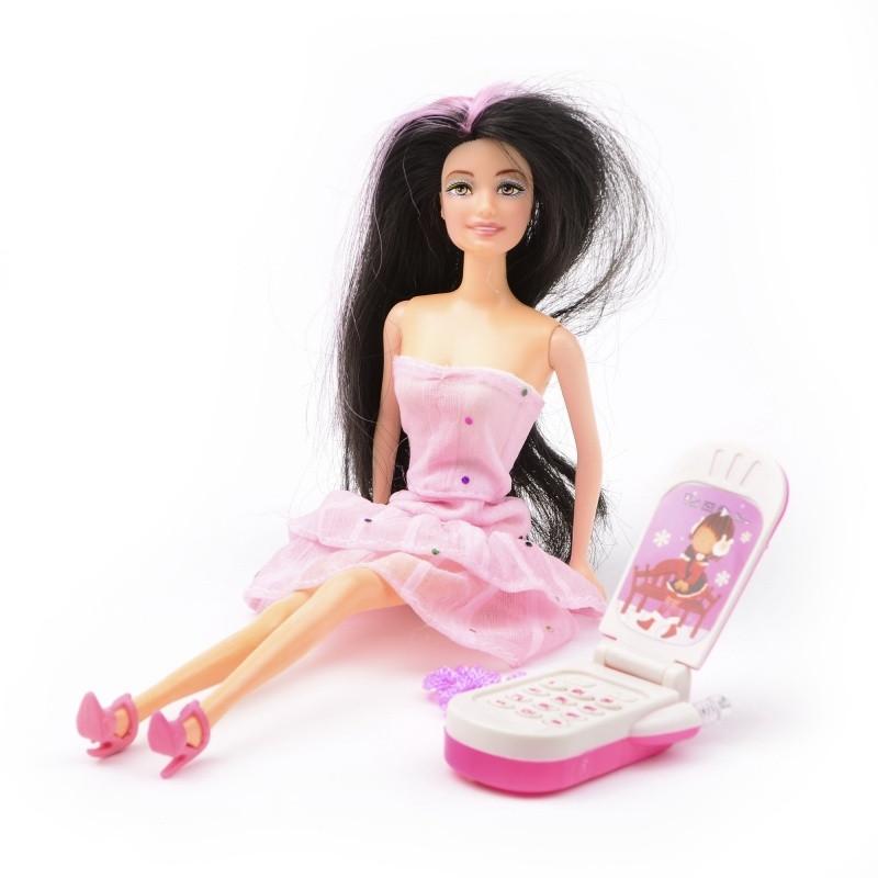 Ця лялька і ігровий набір сподобається вашій дитині з першого погляду. Кожна дівчинка хотіла б бачити в своїх друзях, таку красиву і модну подружку. Разом з лялькою в наборі є мобільний телефон, за допомогою якого малятко зможе постійно бути на зв'язку зі своїми друзями і обговорювати найважливіші новини дня. З цією лялькою у крихітки буде любов з першого погляду, вона захоче придумати для неї особливу історію і сюжет гри. Тому всіляко допомагайте і сприяйте розвитку уяви і фантазії вашої малечы. Лялька одягнена у вечірню сукню рожевого кольору і взута в туфлі. Для того щоб завершити цей образ можна зшити курточку або кофтинку, щоб лялька не замерзла по дорозі на бал або на вечірку. Також можна придумати і зшити безліч різних речей на всі випадки життя. А завдяки її довгому волоссю можна реалізувати багато ідей зы створення нових зачісок. Можливо, завдяки такому заняттю в вашому домі виросте майбутній стиліст або дизайнер одягу. Набір виготовлений з міцного пластику, що не викликає алергічних реакцій і безпечного для здоров'я вашої дитини. Рекомендується для гри дітям від 3 років.