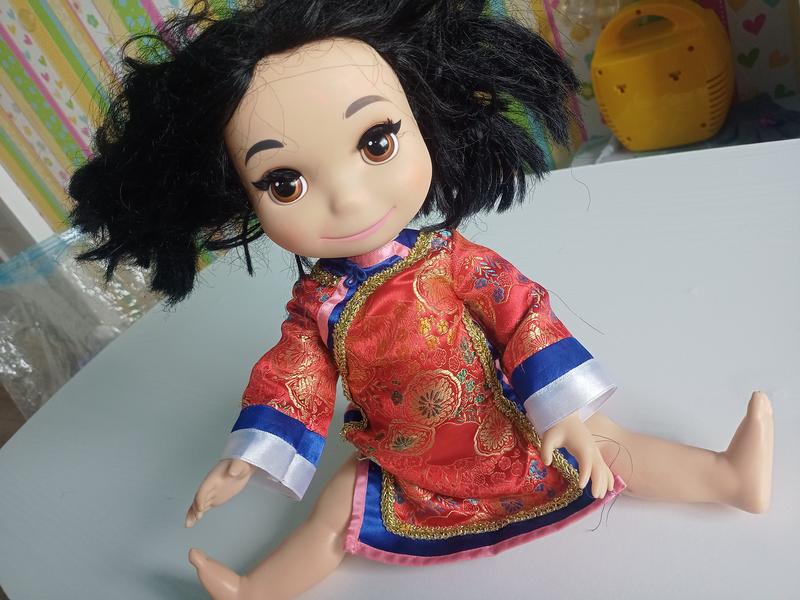 Кукла Disney Поющая Китьянка Кукла Disney из коллекции страны мира - Китьянка Кукла поет (рабочие состояние), есть нюансы - все на фото: - спутанные волосы, - закрепили клеем пистолетом в районе трусиков, ведь по шву чуть разошло - голова держится, но тоже может отпасть, если с усилием задевать (слабое крепление).