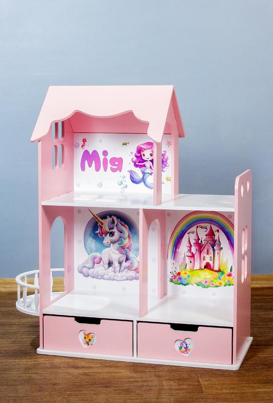 Домик для кукол деревянный. Размер 90*65*30см. Высота комнат 35см. 3 комнаты, терраса и балкон. Два ящики-кошики для іграшок. Окрашен красками на водной основе (не имеет запаха) весь домик собран на шурупах (в комплекте), все отверстия просверлены, собирается как конструктор, шляпки шурупов заклеиваются заглушками в цвет домика (идут в комплекте!) Фото обои на выбор +300грн. Цвет окрашивания на выбор! Любой из домиков можно приобрести в неокрашенном виде, для самостоятельной окраски! Доставка только Новая почта!