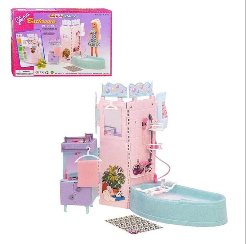 Мебель для барби Gloria Ванна Глория- это мебель маленького размера, которая подходит только для кукол размером до 30 см, особенно сочитаеться с куклами Барби. Разные виды, большой ассортимент, куча вариантов этой серии помогут вам обустроить дом. Все детали сделаны очень аккуратно и полностью соответствуют размеру кукол. Игровой набор подходит для всех кукол типа «Барби» высотой около 29 см. Детали из набора мелкие и очень реалистичные. Набор выполнен из качественного пластика. Может быть дополнен другими наборами из этой же серии. Различные элементы для обстановки, входящие в этот набор, помогут понять какая существует мебель, для чего она предназначена и как ей правильно пользоваться. В данный набор входит: • ванна; • кран с душем; • полочки для ванных принадлежностей; • зеркало; • коврик; • функциональный шкафчик. Размер коробки: 31 х 21 х 7 см. Кукла в комплект не входит.