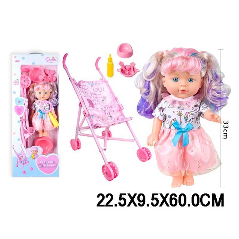 Кукла 33 см MiC с коляской и аксессуарами HX830-3/4 Это идеальный комплект для тех, кто любит заботиться о своей маленькой подружке. Эта кукла предоставляет детям возможность воплотить в жизнь ролевые сценарии, развивая фантазию и заботливость. Основные характеристики товара: 1. Реалистичный размер: Кукла имеет размер 33 см, что делает ее удобной для детских рук и создает естественные условия для игры. 2. Коляска в комплекте: В комплект входит удобная коляска, которая позволяет маленьким "родителям" ухаживать за куклой и везти ее в своих приключениях. 3. Аксессуары включены: Комплектация включает разнообразные аксессуары, такие как бутылочка, пустышка и другие, что добавляет реализма игровому процессу. 4. Качественные материалы: Кукла и аксессуары изготовлены из безопасных и прочных материалов, обеспечивая долгий срок службы товара. 5. Развивающий опыт: Игра с куклой способствует развитию социальных навыков, воображения и заботливости у детей. Кукла MiC в коляске с аксессуарами (33 см) - отличный выбор для тех, кто ищет качественную и разнообразную игрушку, способствующую развитию фантазии и творческого мышления детей. Можете купить уже сегодня!