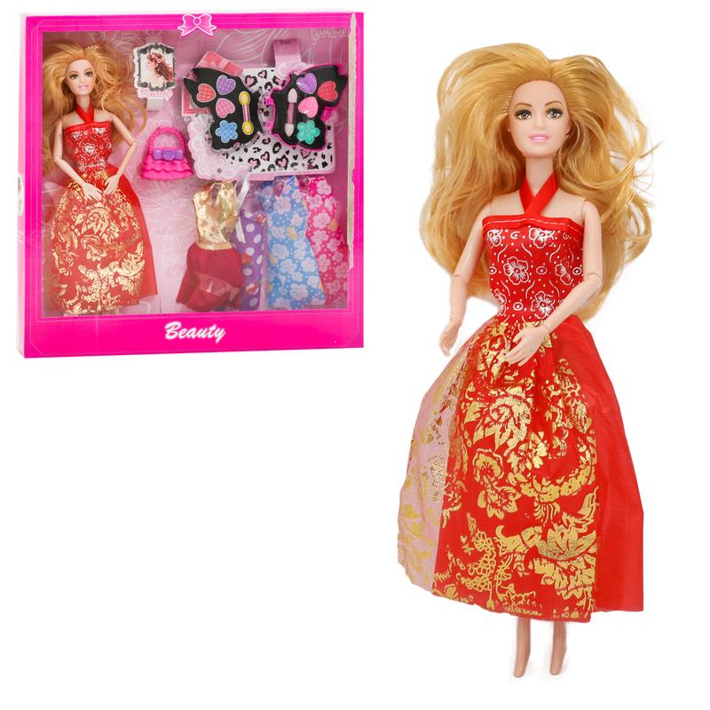 Лялька типу Барбі. Комплектація - сукні, косметика, сумочка. Паковання — коробка. Розмір - 32х5х32,5 см.