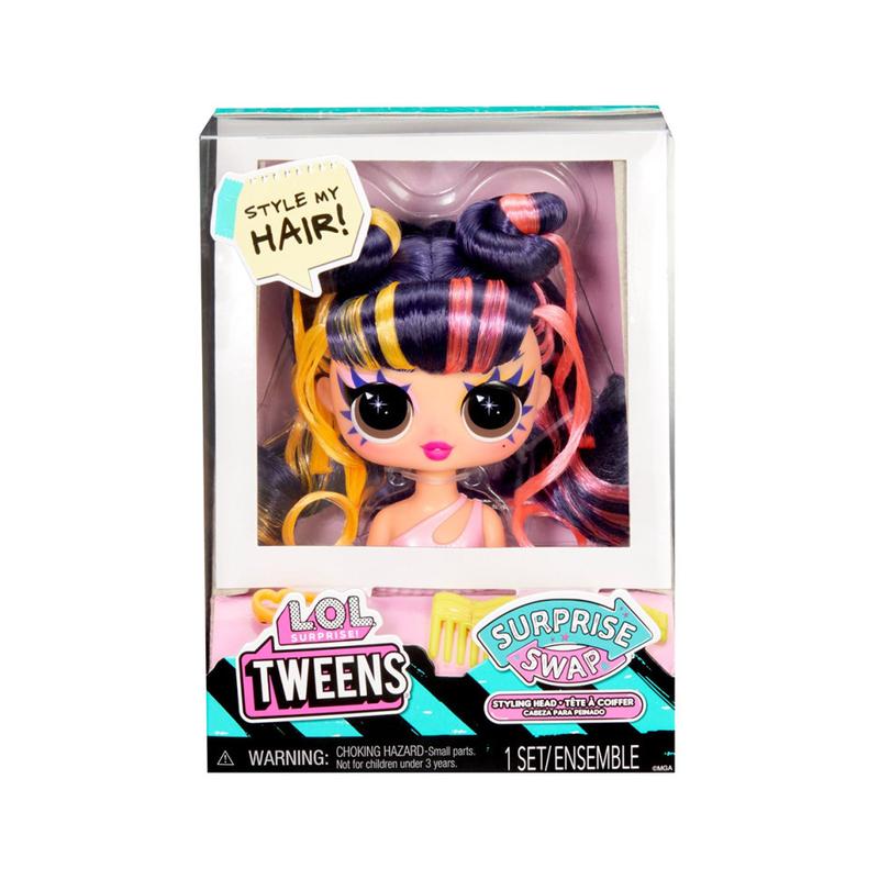 Знакомьтесь с куклой-манекеном L.O.L. SURPRISE! Tweens серии 'Surprise Swap' Меняйте прическу вашей куклы, экспериментируйте с ее стилем и берите ее всегда с собой! Перед игрой нужно помыть волосы куколке, чтобы смыть лак для волос Манекен удобно носить с собой в сумочке и закреплять на поверхностях благодаря присоске Кукла-манекен сочетается с куклами Tweens серии 'Surprise Swap' Манекеном можно играть отдельно от куклы и создавать новые прически! В набор входит: 1 кукла-манекен серии Tweens, 2 аксессуары для волос, 1 расческа. Соберите всю коллекцию L.O.L. SURPRISE! Рекомендовано для детей в возрасте от 3 лет.