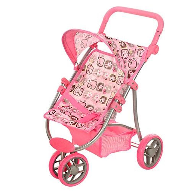 Коляска - тростинка для ляльки, з навісом. 3 колеса, регулюється за висотою. Є ремені безпеки. Матеріал - комбінований. Упаковка - коробка. Розмір - 32х11х50 см.