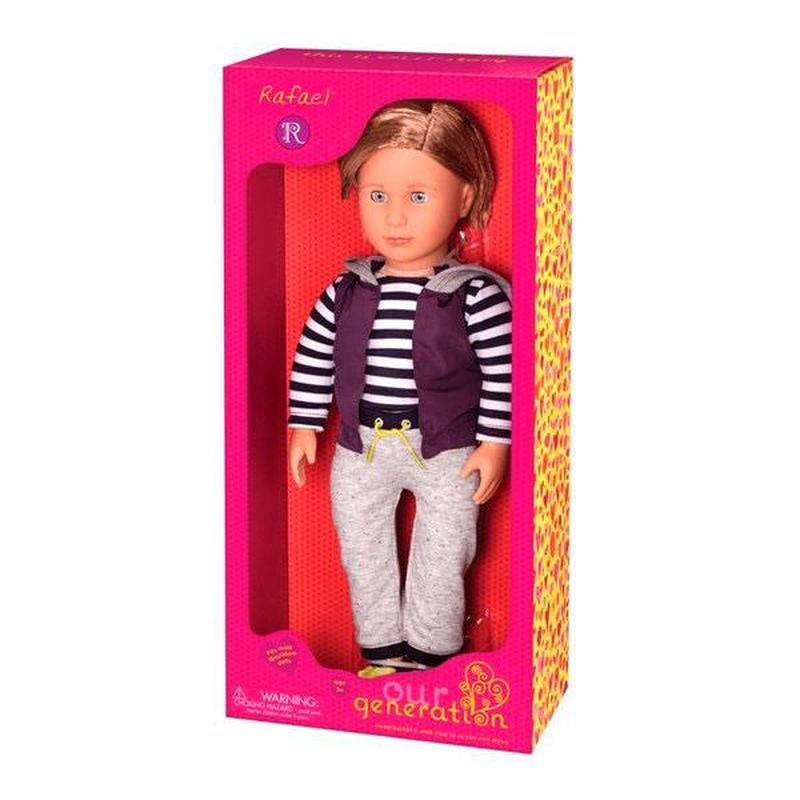 Лялька Our Generation хлопчик Рафаель 46 см BD31155Z Лялька Our Generation хлопчик Рафаель являє собою стильного молодого хлопця з густим світлим волоссям, який одягнений у зручний шкільний костюм. З нею діти можуть втілювати свої власні сюжети і пригоди, розвиваючи водночас свою фантазію і навички рольової гри. Лялька Рафаель, що має м'яке наповнення в тілі, має реалістичні пропорції, що надає їй більш натурального вигляду, відмінного від традиційних ляльок, таких як Barbie. Її зовнішність виконана з великою деталізацією, і вона приємна на дотик. Одяг, який він носить, надає ляльці вишуканого стилю. У комплектацію Рафаеля входить 6 предметів: - сама лялька, - реглан, - жилет, - штани, - пара взуття, - білизна. Це дає змогу дітям змінювати образи ляльки та створювати різноманітні сценарії ігор. Гра з лялькою Our Generation не тільки розвиває фантазію та творчі здібності дітей, а й навчає їх відповідальності та турботи про інших. У процесі взаємодії з цією лялькою діти покращують комунікативні навички та можуть створювати захопливі історії, дозволяючи своїй фантазії блукати на волю. Рафаель та інші ляльки Our Generation надають можливість дітям навчитися виражати себе і розвивати свій естетичний смак. Можете купити вже сьогодні!
