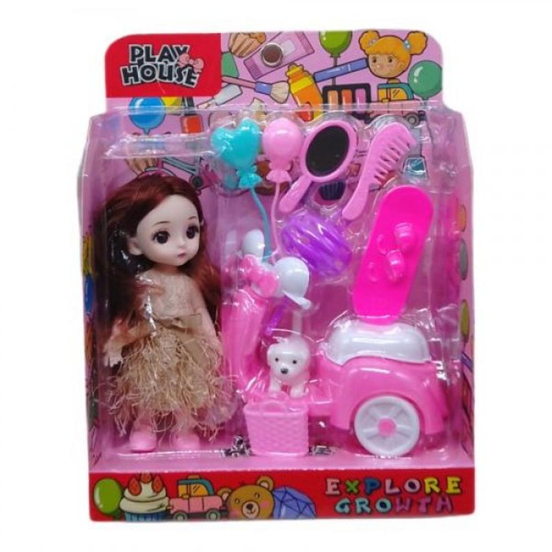 Большой кукольный набор с очаровательной куколкой и множеством аксессуаров для нее. Высота куклы - 15 см. Руки, ноги и голова подвижные. В комплекте есть собачка, мопед, скейтборд, шлем, зеркальце, расческа, сумка и воздушные шарики. Выполнено из прочного пластика. Для детей от 3-х лет.