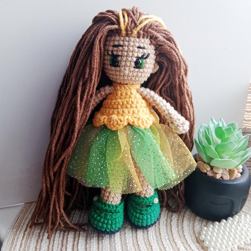 Кукла вязаная крючком,в едином уникальном экземпляре.З гипоаллергенной пряжи. Одежда съемная. Размер 17см.