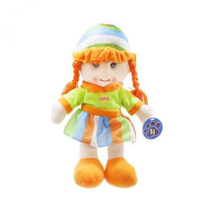 М'яка іграшка лялька. Зшита з натурального матеріалу трикотажу. У ляльки яскравий барвистий наряд, мила шапочка і стильні косички. Розмір ляльки: 36 см. Упаковка: Пакет Колір: Різнобарв'я Вага з упаковкою: 145 г Габарити в упаковці: 23 x 43 x 7 см Габарити без упаковки: 20 x 36 x 7 см Країна виробник: Китай Матеріал: Текстиль Комплектація: Лялька
