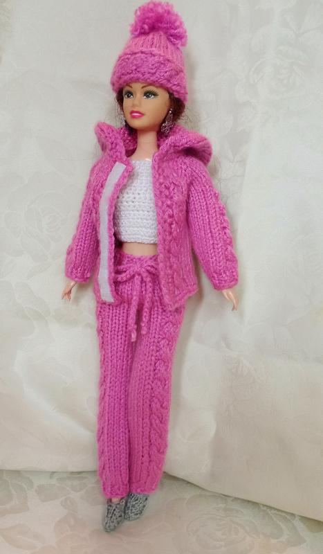 Стильный костюм ручной работы спицами: курточка, штаны, майка и шапка. Легко одевается т приятен на ощупь. Ваша девочка будет в восторге. Цена комплекта 220 грн. Одежда для куклы барби. Одежда для куклы барби