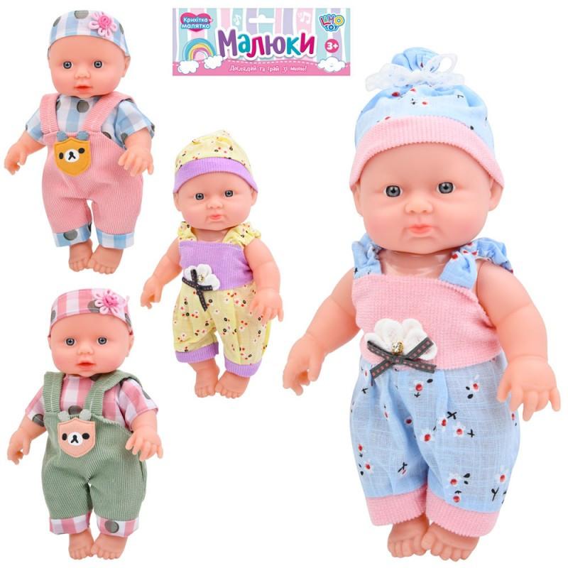 Пупс M201-R-538-W , муз., бат. (табл.), кул., 19-34-7 см. Артикул:M201-R-538-W У ляльки гарне личко, великі очі та пухкенькі щічки. Одягнений малюк у милий костюмчик, на голові – шапочка. Пупса легко і зручно брати в руки, можна саджати, укладати, переодягати, а ще – покласти в іграшковий візок і взяти з собою на прогулянку. Висота пупса – 23 см. Звукові ефекти працюють від батарейок (входять до комплекту). Для дітей від 3 років. Розмір упаковки: 19*7*34 см. Країна похождення:КНР LimoToy