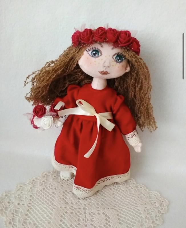 Кукла текстильная, высота 28 см. Платье из крепдешина. Одежда снимается, волосы с пряжи можно расчесывать расческой с широкими зубами, можно немного постричь, девчонки это любят.