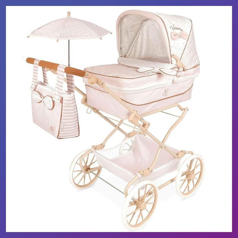 Дитяча прогулянкова коляска для ляльок із регульованим капюшоном і кошиком для речей decue...