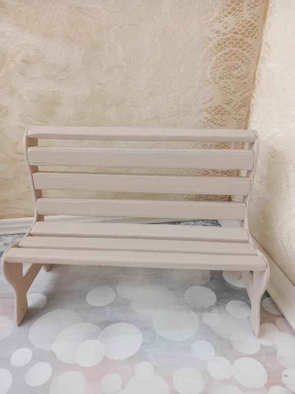 Лавка деревянная: сиденья8 см, общая высота 18 см, длина 25 см.